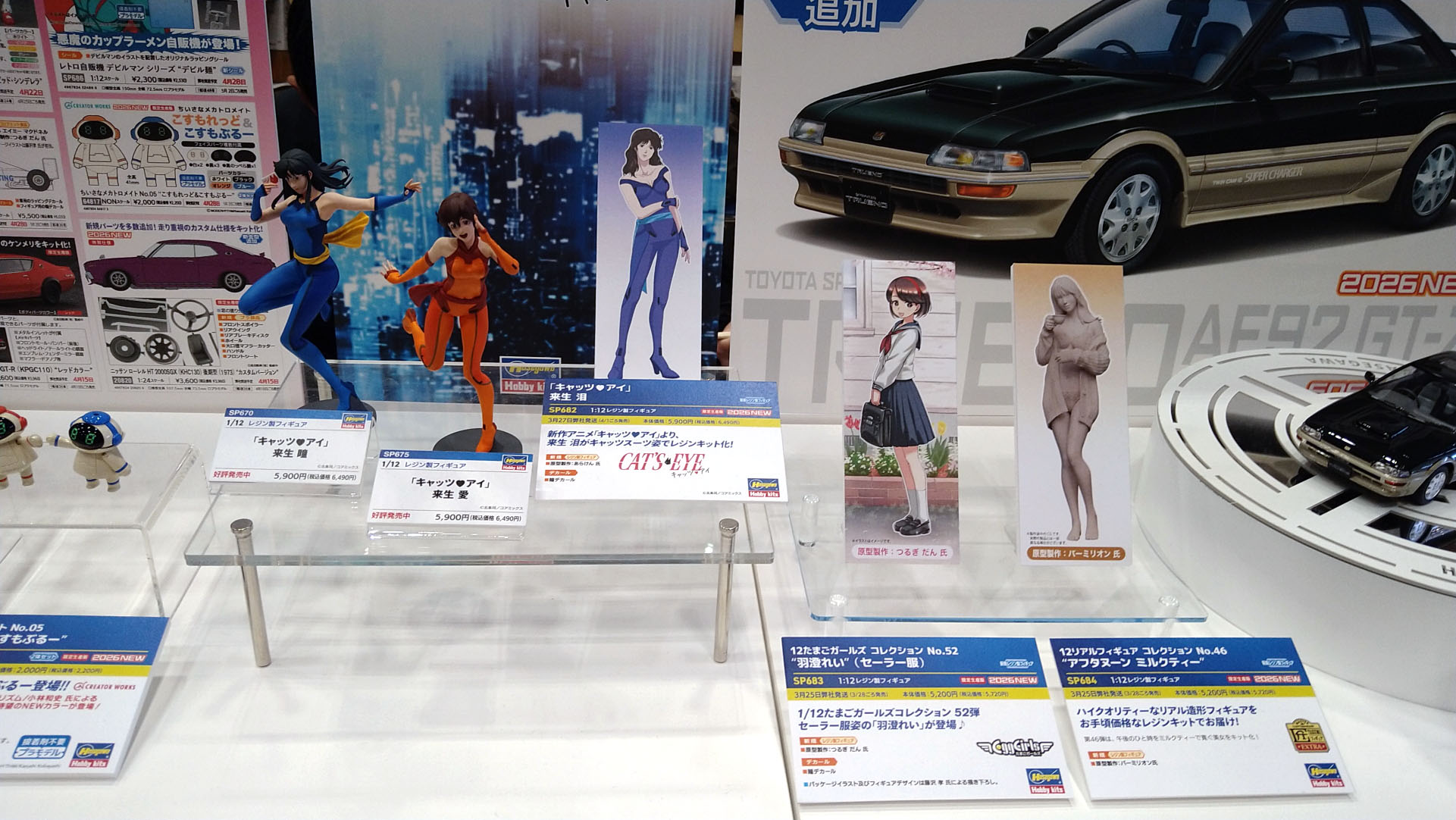 また、当日は模型メーカー「ハセガワ」も卓を構えており、自分が原型を担当した中から最近作の「キャッツ・アイ」3姉妹が展示されておりました。泪姐さんはパネルのみですが、愛の実物が展示されるのは初めてと思います。もっと事前の宣伝してよハセガワさん!…(^^;